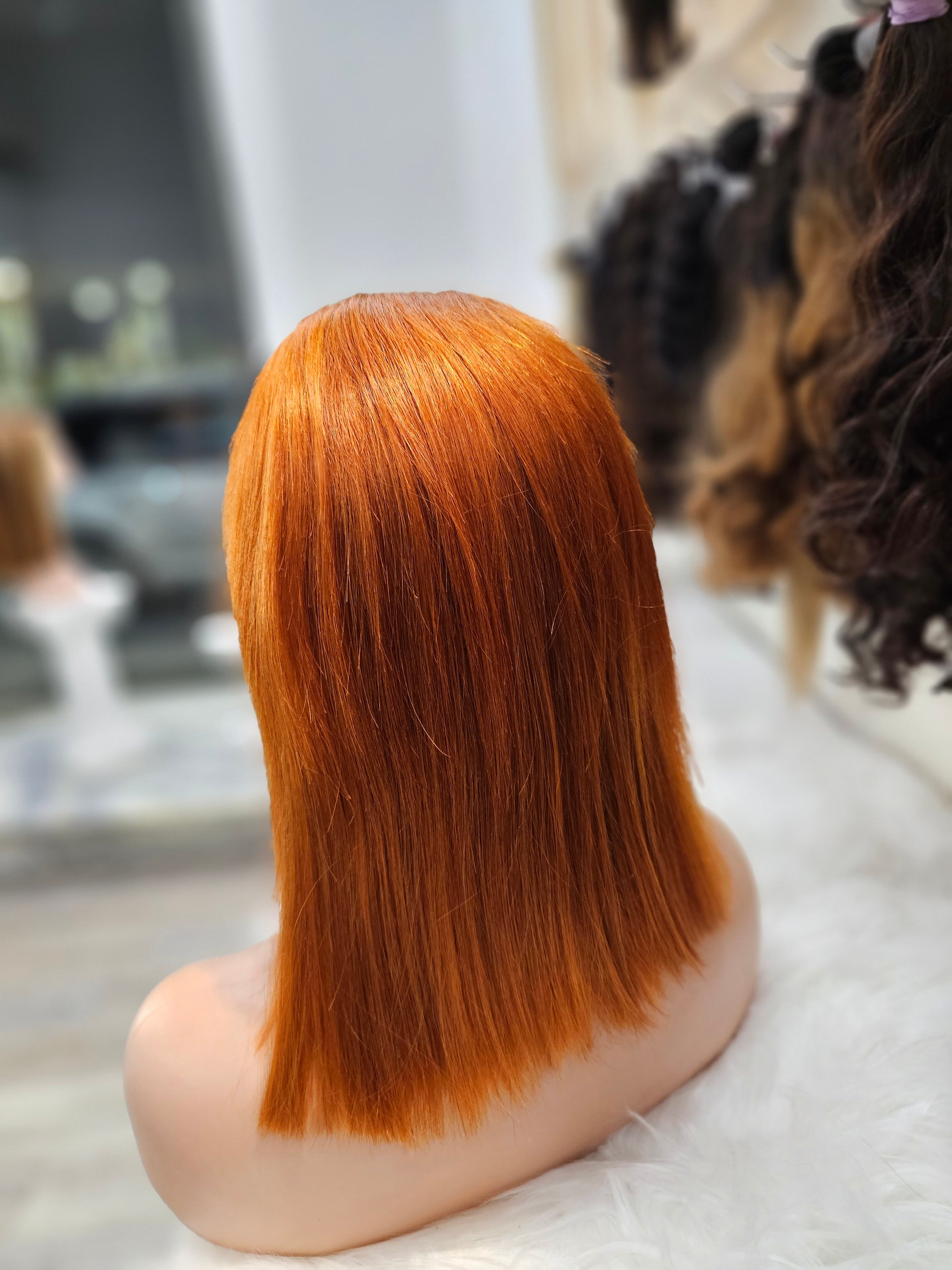 Parrucca arancione 12" ( 25cm ) stile BOB con frontale ANGELBELLA BOBTT-6A13X4ST12ZR5