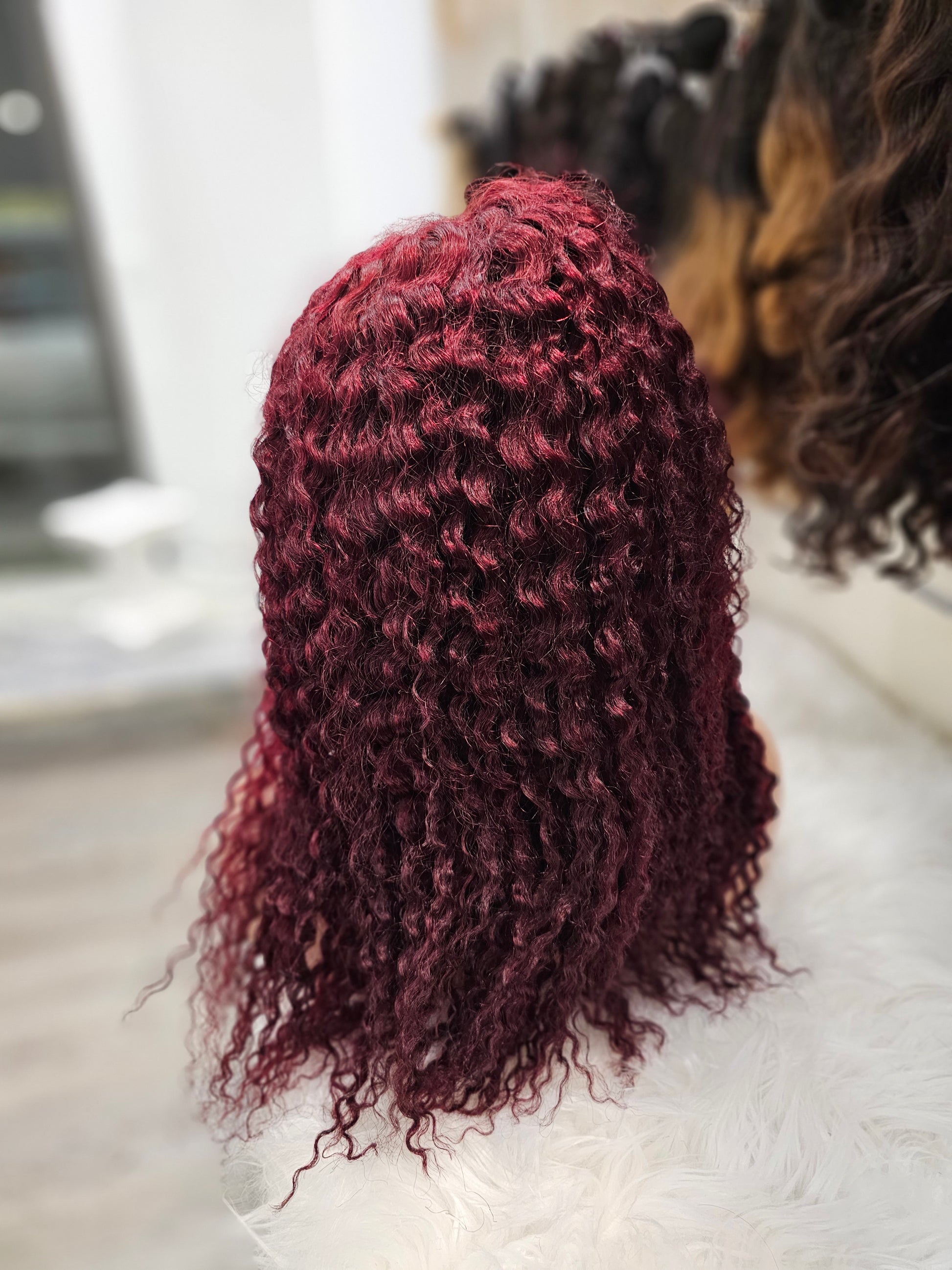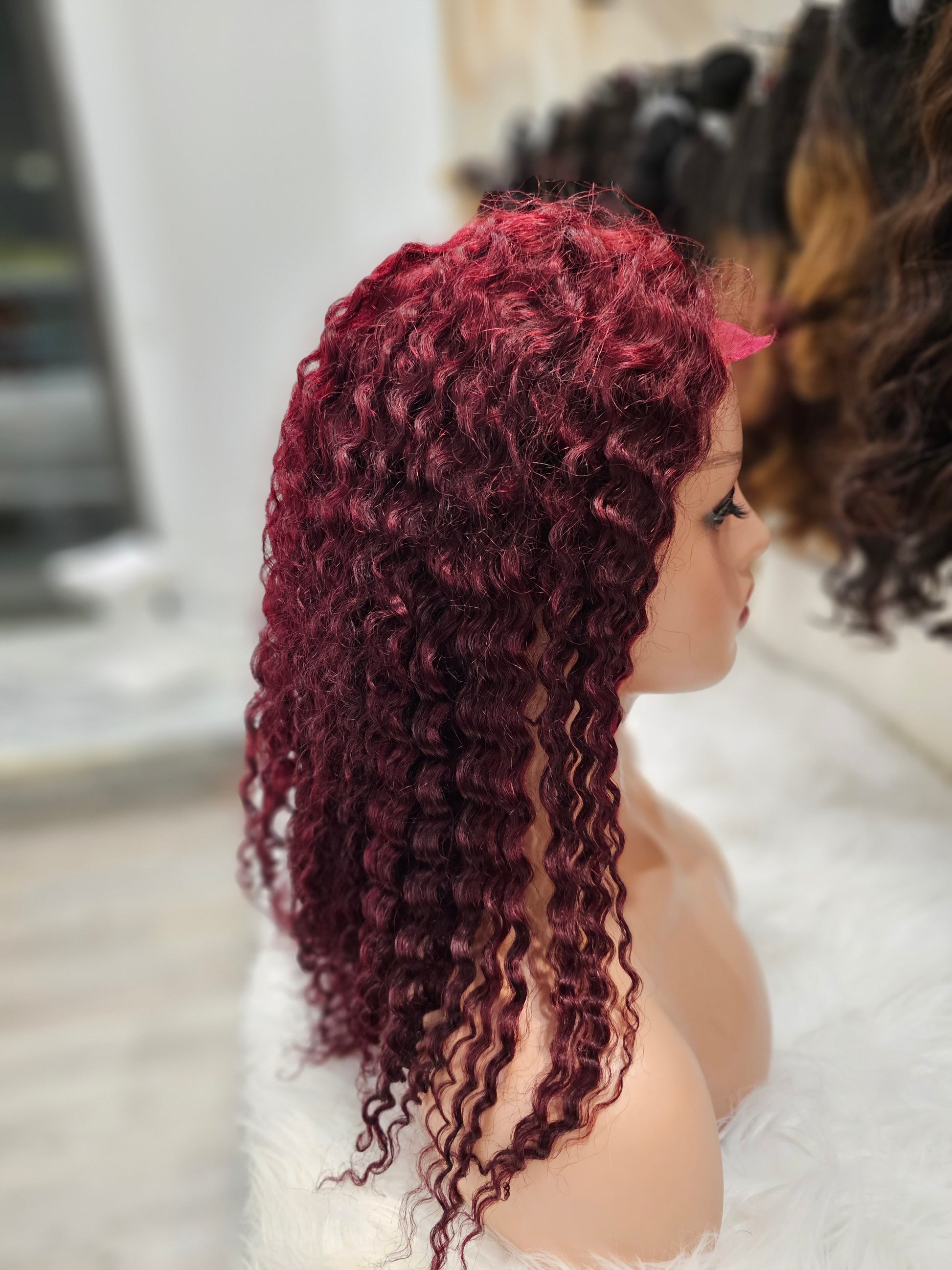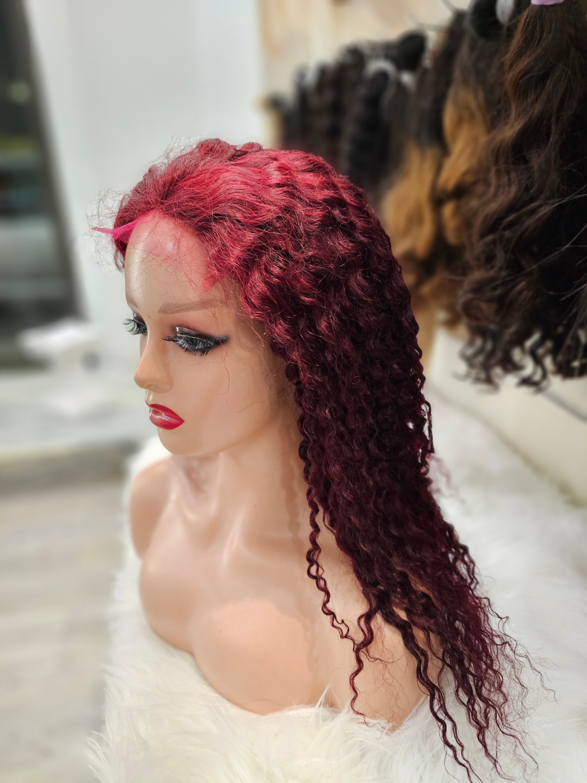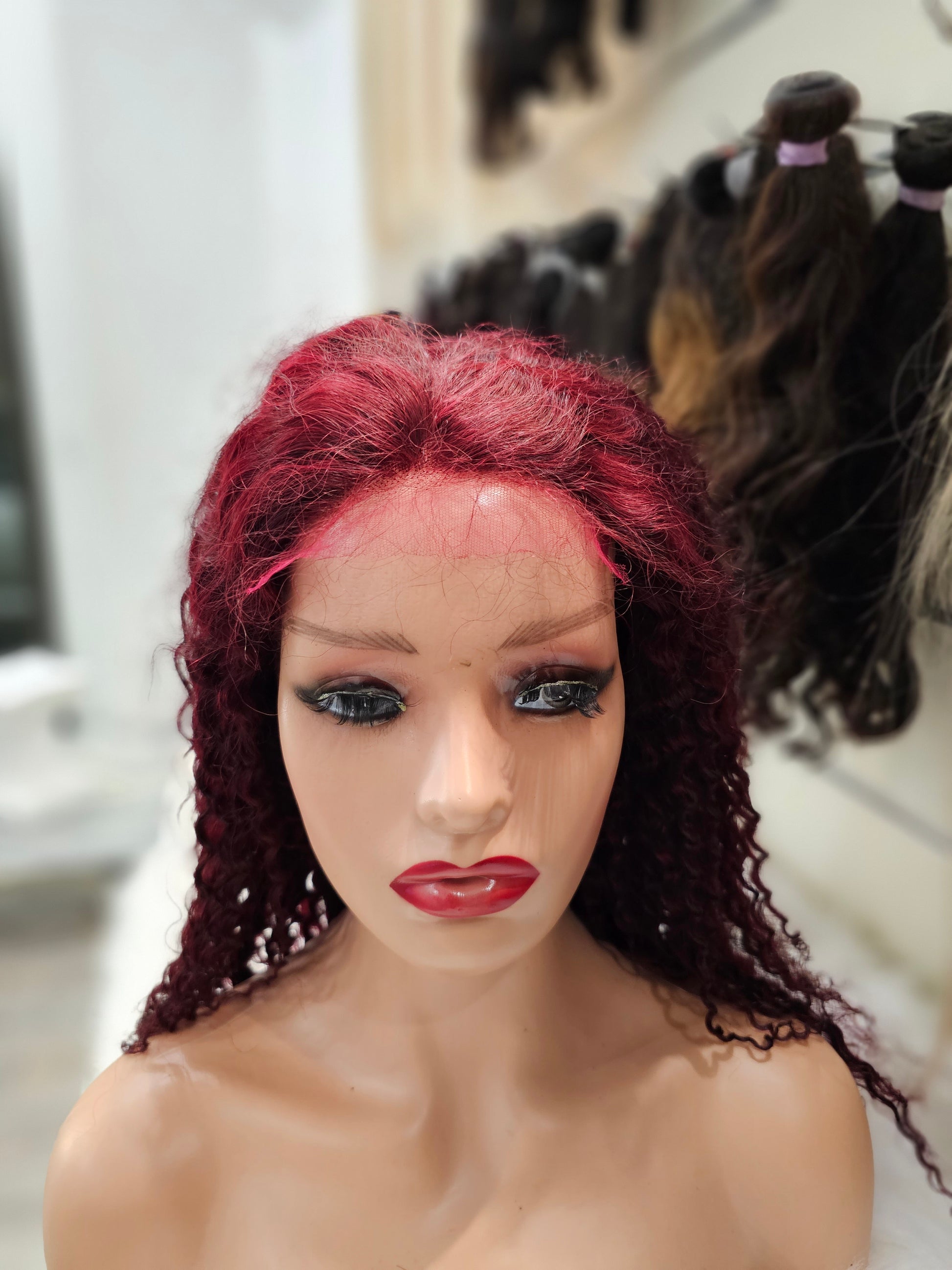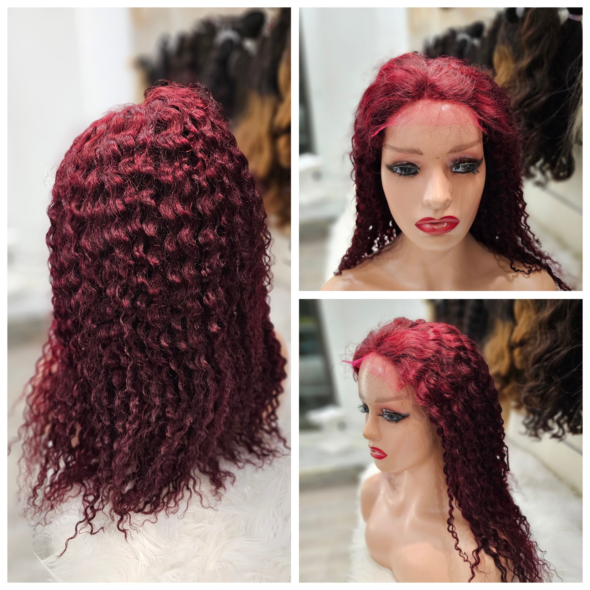 Questa parrucca frontale è realizzata al 100% con capelli umani di lunghezza di 40cm e dalla tonalità di rosso riccio. Garantisce un aspetto naturale e voluminoso. Ideale per un look audace e trendy.