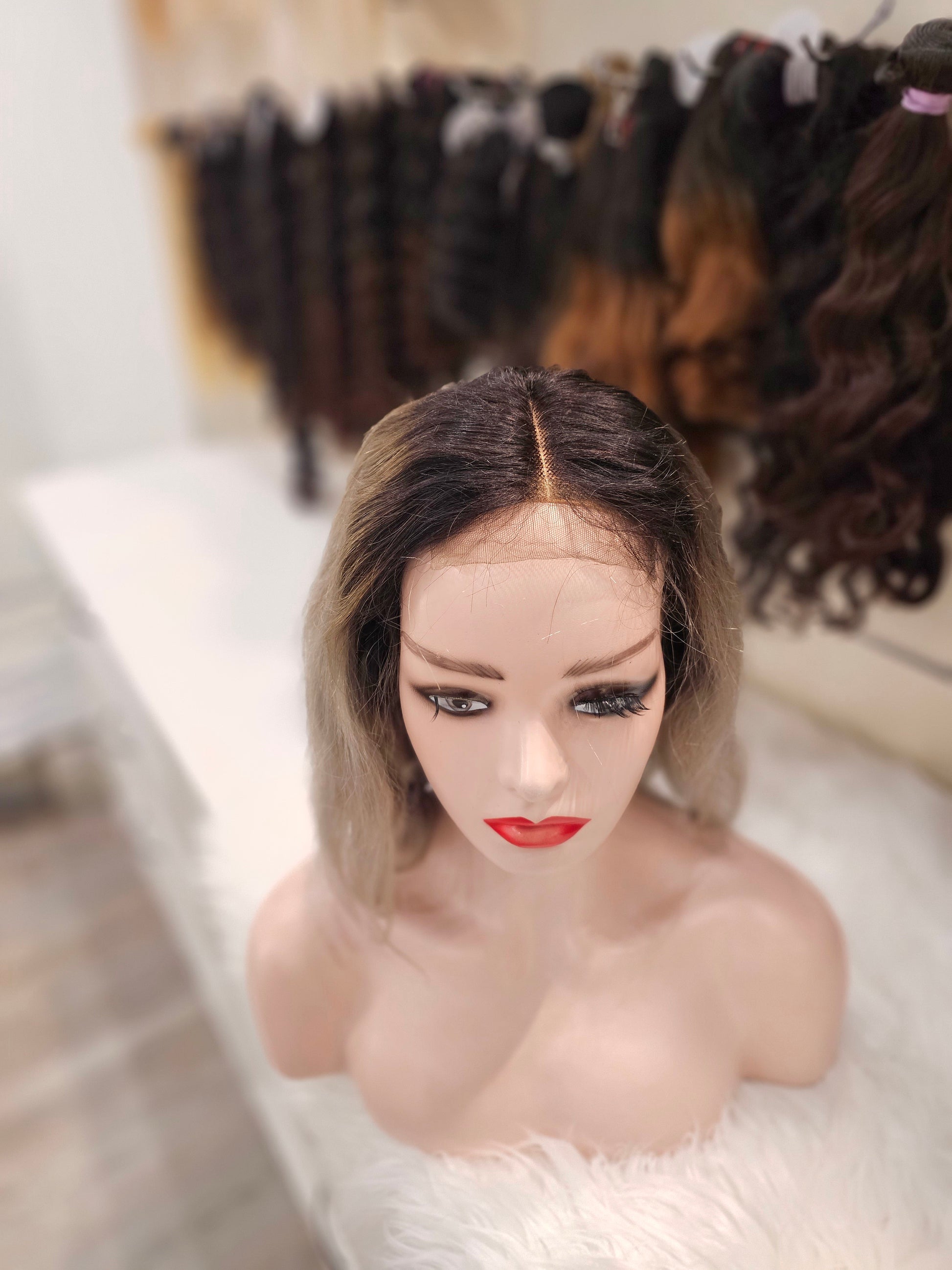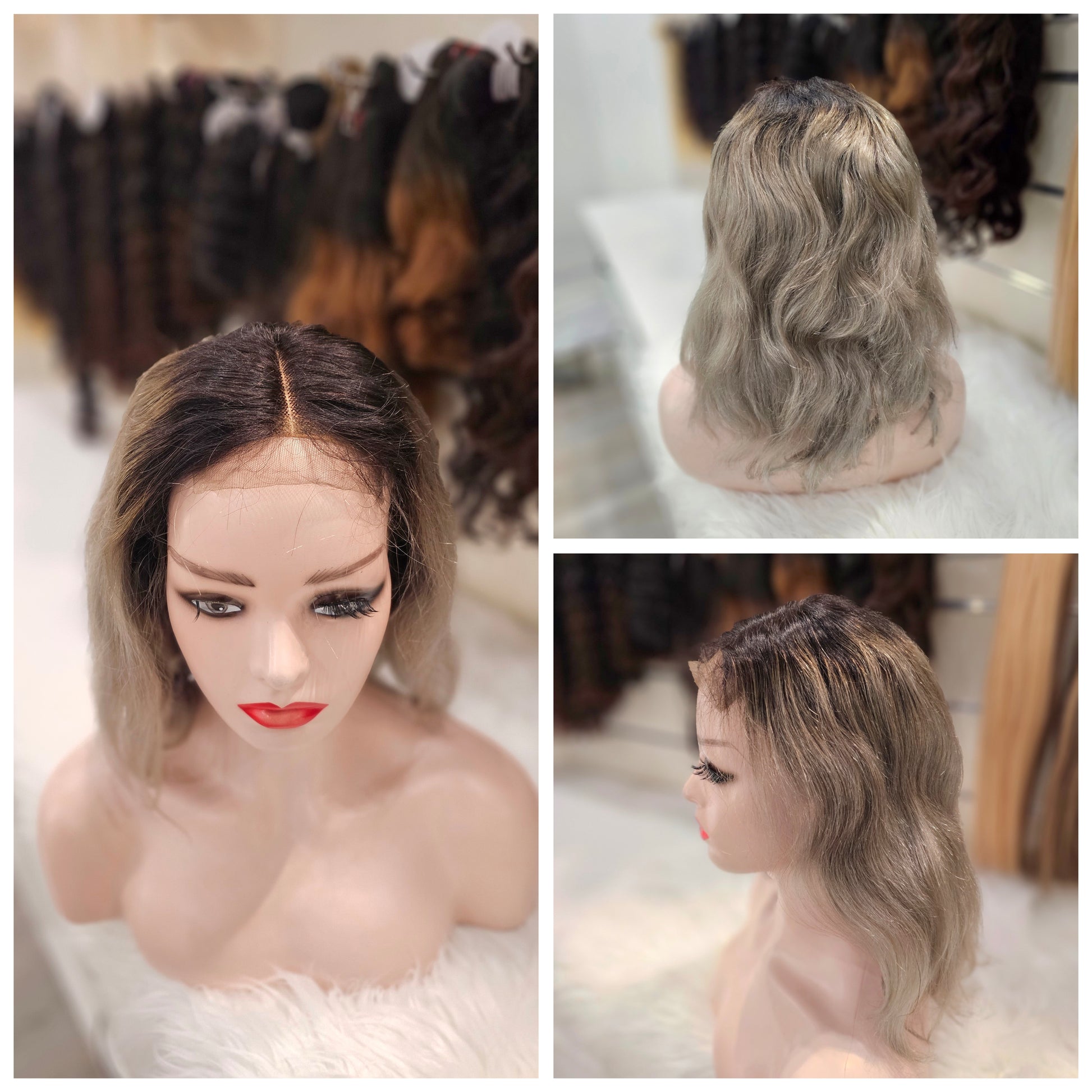 Parrucca corta mossa 100% capelli veri di colore 1b alla base e grigio lunga 25cm
